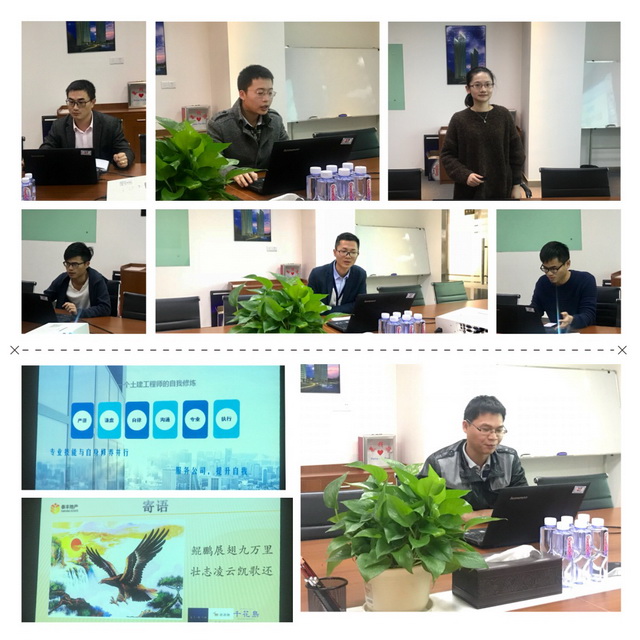 述職人員分別從“2017年工作總結(jié)、工作重難點(diǎn)剖析、改進(jìn)措施、心得體會(huì)及2018年的工作計(jì)劃等”幾個(gè)方面進(jìn)行了述職匯報(bào)。大家的述職報(bào)告精彩紛呈;有人用數(shù)據(jù)說(shuō)話標(biāo)明這一年的業(yè)績(jī),有人用照片見證這一年的工程進(jìn)度,有人融入詩(shī)詞對(duì)工作進(jìn)行總結(jié)展望,有人用大鵬展翅對(duì)新一年的期望。