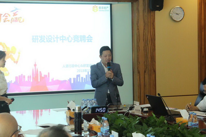 為滿足公司業(yè)務發(fā)展而產(chǎn)生的人才需求,拓寬員工職業(yè)發(fā)展通道,讓有能力的員工脫穎而出,2018年11月1日,泰豐地產(chǎn)研發(fā)設計中心聯(lián)合人資行政中心組織召開的“2018年泰豐地產(chǎn)研發(fā)設計中心競聘會”于集團大會議室隆重舉行。泰豐地產(chǎn)總裁袁毅先生,人資行政副總裁馬欣先生,運營副總裁王春濤先生,規(guī)劃發(fā)展副總裁徐健成先生以及部分中心負責人等共逾十人擔任評委,出席參與了此次競聘活動。